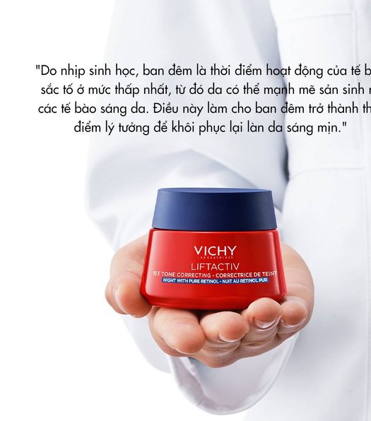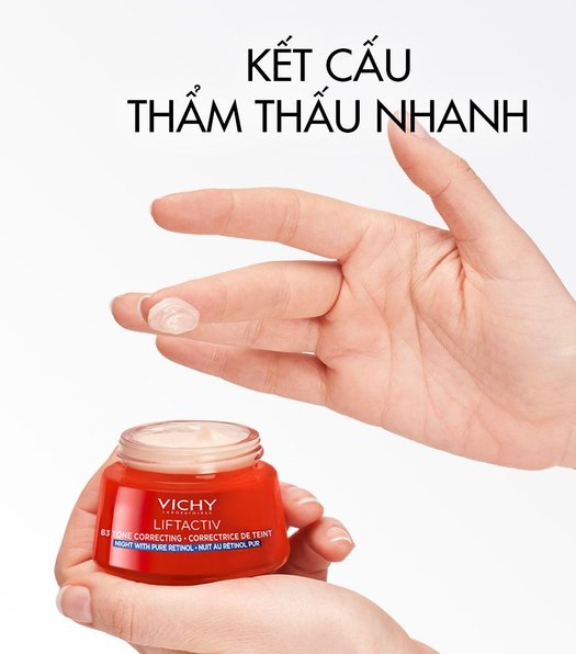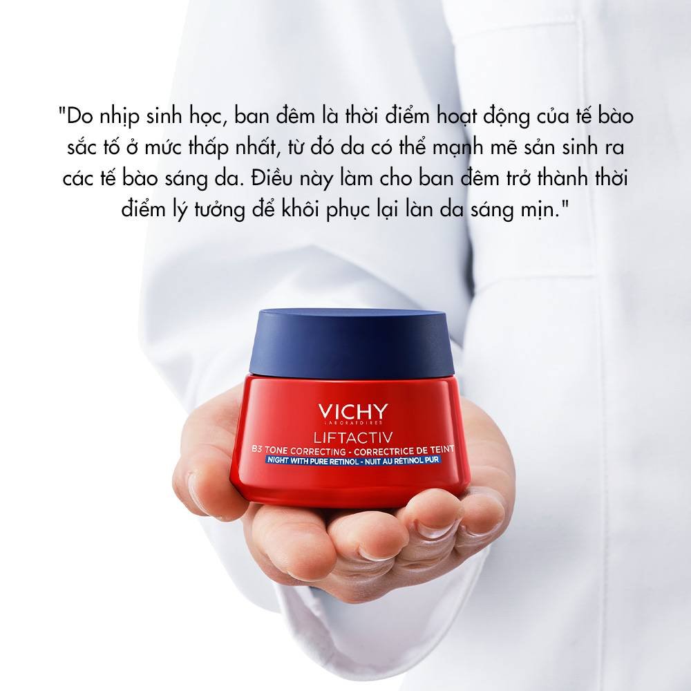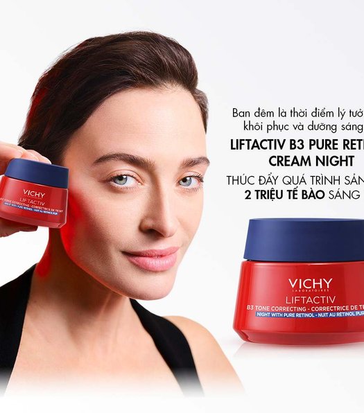 Lần đầu tiên, Kem Dưỡng Vichy Lifactiv B3 Pure Retinol Cream Night có sự kết hợp của B3 và Retinol Nguyên chất giúp thúc đẩy quá trình sản sinh 2 triệu tế bào sáng da