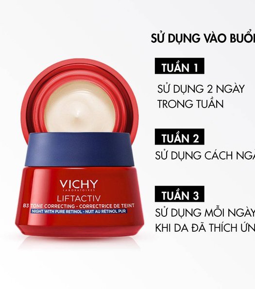 Cách sử dụng Kem dưỡng sáng da mờ thâm nám Vichy Lifactiv B3 Pure Retinol Cream Night hiệu quả như sau: