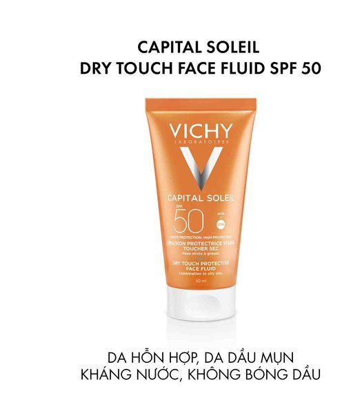 Kem chống nắng không màu không gây nhờn rít Vichy Capital Soleil Dry Touch Face Fluid SPF50 UVB+UVA 50ml giúp bảo vệ da trước tác hại của tia UVB và tia UVA. Dạng kem không màu, không gây bết dính hay nhờn rít, thông thoáng lỗ chân lông mà vẫn cung cấp đủ độ ẩm cho da sau khi thoa. Đặc biệt khả năng nâng tông tự nhiên giúp làn da sáng mịn suốt ngày dài.